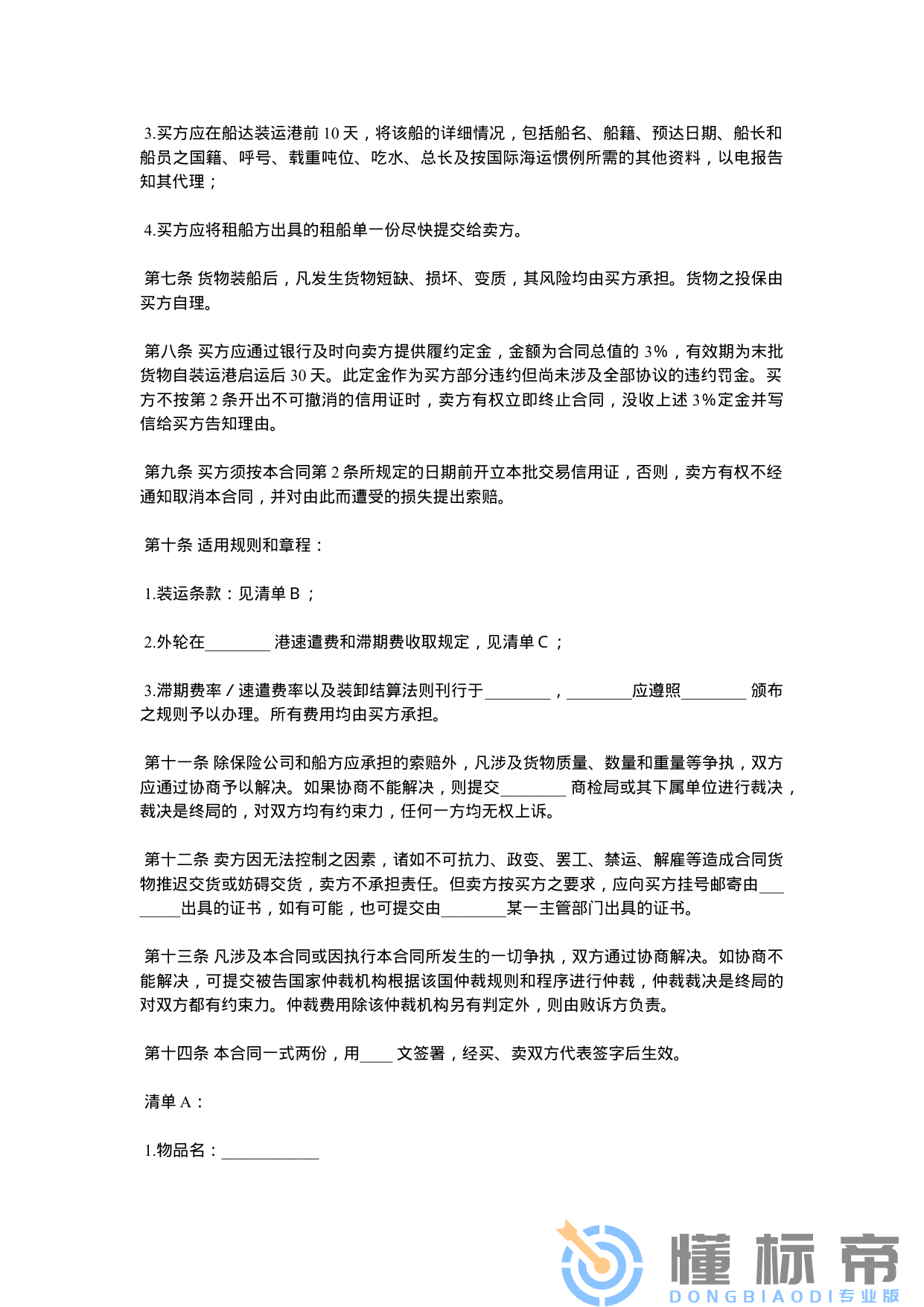 当前位置: 首页合同范本正文 本文档共3页,登录后阅读更多内容,继续阅读 声明:本站所有文章,如无特殊说明或标注,均为本站原创发布。任何个人或组织,在未征得本站同意时,禁止复制、盗用、采集、发布本站内容到任何网站、书籍等各类媒体平台。如若本站内容侵犯了原著者的合法权益,可联系我们进行处理。 收藏 链接
